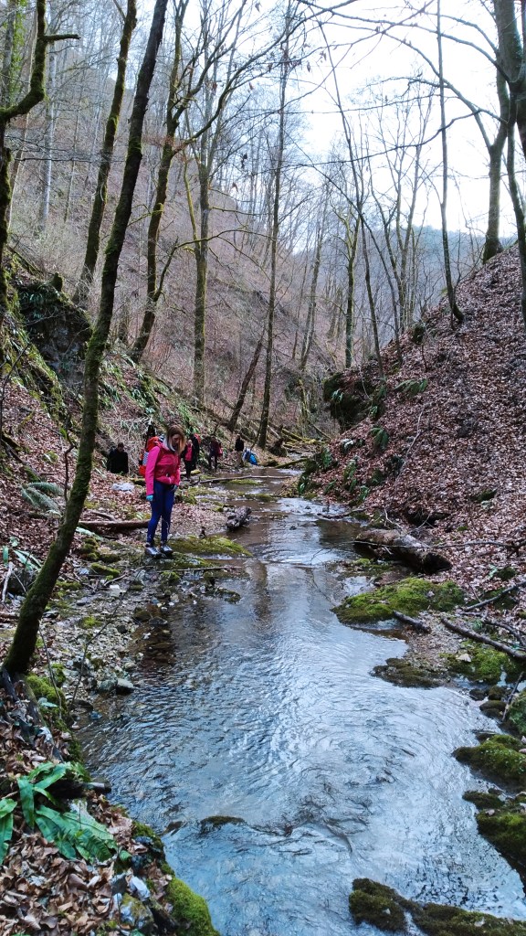 Od slapa idemo uzbrdo, velik nagib, sklisko je i osigurano sajlama, zatim se spuštamo do Debelog potoka koji nam nudi bezbroj kombinacija preskakanja po kamenju koje strši iz vode ili po srušenim stablima. I tako skakućemo sat vremena. Zaigrani i koncentrirani zaboravljamo na umor i prijeđenih 30 km.