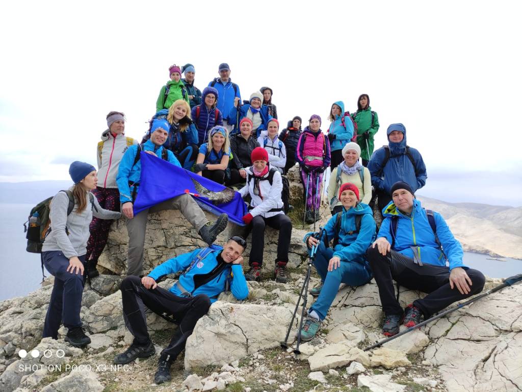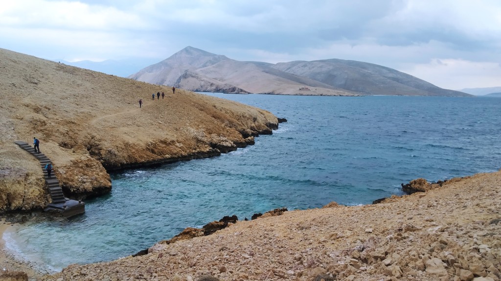 Lijepo je hodati kamenim prostranstvom krčkog krša, bila sam više puta. Ravno je, a kamen nije grub kao po Rabu. Vrhovi se smjenjuju – Veli vrh – Obzova – Zminja – Veliki hlam – Vrška glava. Pogled na Baščansku dragu i Bašku na lijevo, a more na desno, te otok Prvić . Dan je oblačan i puše lagano jugo. To je puno bolje od sunčanog dana jer tad nema nikakvog zaklona od sunca, a ni buru ne bismo htjeli. Bojim se da ćemo se u Bašku spustiti, kao što je šef rekao, a mislila sam da se šali. Nekima je dovoljno da hodaju istim stazama svejedno koliko puta. Meni nije. Trebam nešto novo. Vršak na kojem još nisam bila, pogled iz nekog drugog kuta, bilo što. Onda je meni uzbudljivo. Trebam iznenađenje. Zadovoljno primjećujem da se udaljavamo od Baške.