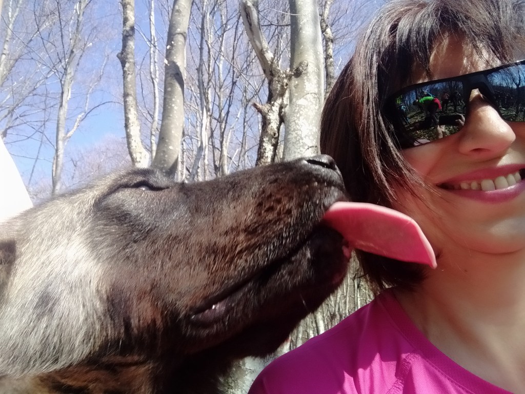 Zajedničko fotkanje ne voli, ali selfie mu je u redu. Nazvali smo ga Medo. Ubrzo preuzima ulogu vođe. Sreća da to Dubravku i Jurici ne smeta. Kolače smo pojeli samo da mu imamo u što vodu natočiti. Na dužnosti ne jede ni špek, ni kobasice, tek je malo peciva uzeo iz pristojnosti valjda. Na sljedećoj pauzi, a nakon strmog uspona poslužio se snijegom. Malo ga je pojeo da ugasi žeđ, a onda se zavalio da se rashladi.