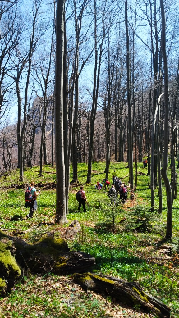 Nakon spuštanja sa Vitunjske gradine penjemo se bukovom šumom. Dalje idemo grebenom. Povremeno hodamo tepihom od medvjeđeg luka. Ruksak mi je otežao. Bit će za štrudlu za sljedeći izlet, a najbolji mi je u salati.