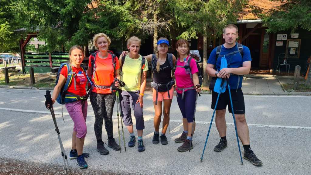 Trebalo nam je sveukupno 14 sati i 30 min da prođemo cca 56 km, a pri tom smo savladali 2700 m visine pri usponima. Još je bio dan kad smo odložili ruksake na autobusnoj stanici u Vugrovcu, a 15 min ranije dok smo se spuštali po strmom prastarom asfaltu posutom šljunkom poskliznula sam se i dočekala na stražnjicu s rukama pored dotične. ” Jesi dobro?” – svi su poskočili. Nije me ništa zaboljelo, primakla sam ruke, hmm, lijeva ne izgleda kao ujutro kad sam u krevetu osluškivala grmljavinu. – “Nisam, pukla je.”- rekla sam.