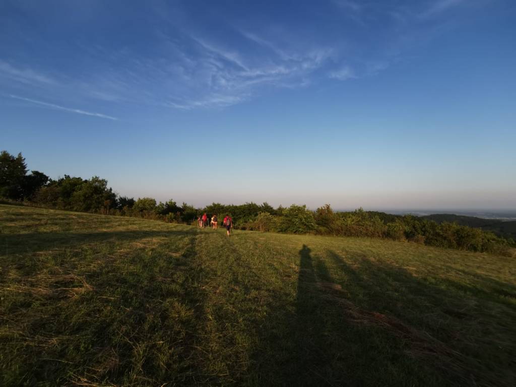 Pd Hunjka. Najduža pauza danas. Odmor. Uglavnom biramo kavu. Htjela sam pojesti grah, ali imaju samo s narezanom kobasicom pa sam odustala. Izuli smo se i podigli umorne noge na ogradu. Najteže mi je bilo kad se ispred nas zaustavio autobus ZET – a. Da se ukrcam? Možda da je bio bliže, ovako je bilo lakše ostati sjediti. Valjda zato nisam otišla, a i nisam osoba koja odustaje tek tako. Bolji poznavatelji staze, Irena npr. obećaje da dalje nema uspona, sve ravno do Gorščice. Aha. Slatkica. Penjali smo se bezbroj puta. Primijenili smo i Sokolaško načelo “Kad ti je preteško hodati – trči.”. To je zapravo ugodna promjena nakon desetak sati hodanja.