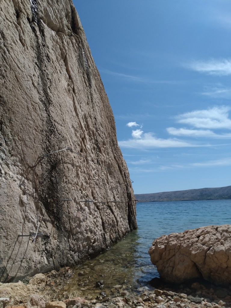 Vozimo se prema Pagu. Pažljivo sam popunila ruksak da mi ne bude pretežak na ferati, a da imam dovoljno vode, da se mogu osigurati na ferati, okupati u moru, malo hrane, malo medicine, rezervna odjeća…zadovoljna sam. Paralizirajuća spoznaja. Nisam uzela gojzerice. Na nogama nježne tenisice sličnije papučama. Užas. Grubi paški kamen. Uzbudljiva ferata. Pogledi s visina. Sve ću to propustiti. Kava na trajektu i mogućnost da mi Sandra posudi svoje tenisice vraćaju me u život. Nekako ću si oprostiti. Pošto vjerujem da je dobro i loše uvijek u ravnoteži mislim da sam današnju dozu lošeg potrošila i da me čeka ista količina dobrog.