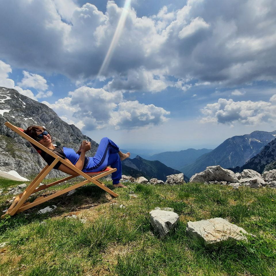 Na Kamniškom sedlu pokraj doma prazne ležaljke za nas. Pogleda i vjetra u izobilju. Izuvam gojzerice i čarape. Nožice su trenutno, ipak, najsretniji dio mene. Kad su se ohladile vode me bose u kuhinju. Ljubazni djelatnici tu su od početka lipnja do kraja rujna, a namirnice dobivaju teretnom uspinjačom. Dom je dobro opskrbljen, a cijene pristupačne. Biram enolončnicu (5€ ).
