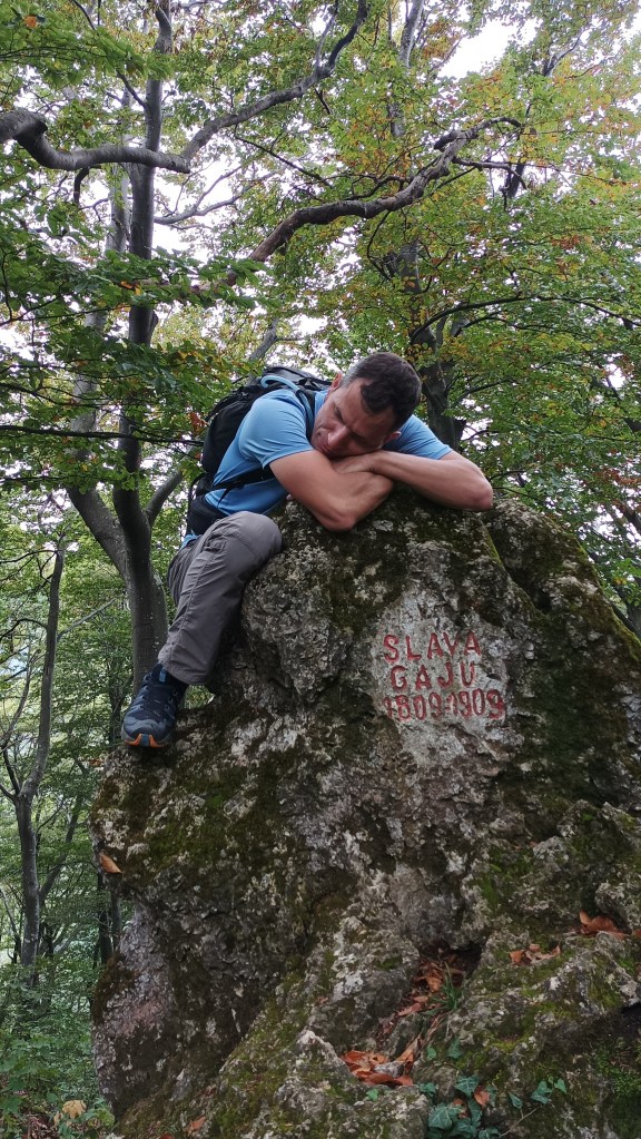 Plešivicom hodamo ugodnim šumskim stazama. Plješivica – travnata zaravan bez drveća, znači da tu nekad nije bilo šuma kao danas. S vrha Plešivice spuštamo se do doma – kleti Poljanica. Uzimamo grah i štrudlu od jabuke, no hit je domaće bučino ulje, koje je Ivan tu kupio – trgamo kruh iz pekare i umačemo ga u ulje na tanjuru od štrudle – slasno! Preporučam 🙂