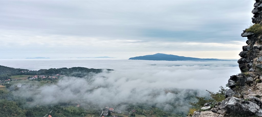 8:00 Krećemo iz Ruda. Dan pomalo oblačan. Šume su još zelene. Kesteni u svojim zelenim oklopima krase krošnje. Veselim se berbi! Puno je kupina, no ni one još nisu slatke. I za njih je prerano. Pojela sam slasnu krušku s tla. Planinarski dom ispod Okića još je zatvoren, no nije problem jer imamo svega u ruksacima. Do Starog grada Okića na 499m popeli smo se via normale za desetak minuta. Nekad su ovdje u sjajnim oklopima hodali vitezovi i promatrali selo ili seljanke možda.