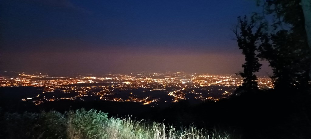 19:20 “Kad sam rekao romantična staza, mislio sam na ovaj pogled na Zagreb.”, govori Jura. Okrećem se dok me oči peku od znoja. “Prekrasno!” Istočni dio Zagreba – milijun gradskih svjetala ispod, a toliko je i zvijezda iznad nas. Dok se okupljamo neki broje zvijezde, a ja ću konačno ispuhati nos i popiti vode :). Dalje je manje strmo, ali ipak uzbrdo idemo. Malo se igramo lovice-skrivača i opet smo na okupu, samo se Jurica uspuhan odnekud vratio. U blizini je zapušten i misteriozan sanatorij za tuberkulozu, koji je za svoju voljenu i bolesnu Ljerku Šram dao sagraditi dr. Dežman pa ga pitam :”Jesi sreo Ljerku?”, “Ne, valjda je u šetnji šumom…”