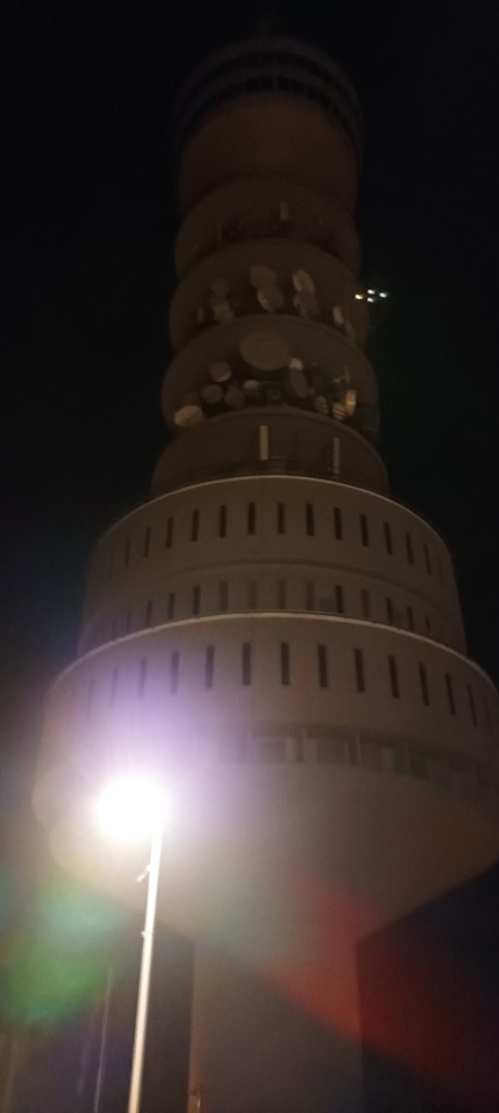 20:10 Ispod tornja. Too! Nema više uspona! Presvlačimo se u suhe majice i sjedamo za stolove. Sami smo na vrhu.  Vadim još tople palačinke, a Lidija kutiju kolača i tako to krene. Javljamo se u WhatsApp grupu, a Mario komentira: “Sjedite? Jedete? Skandalozno! Još samo fali da se spustite busom!” Valjamo se od smijeha.