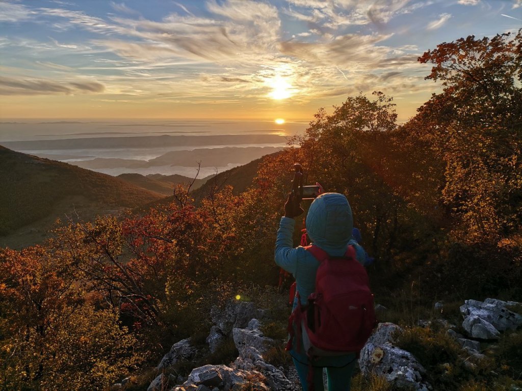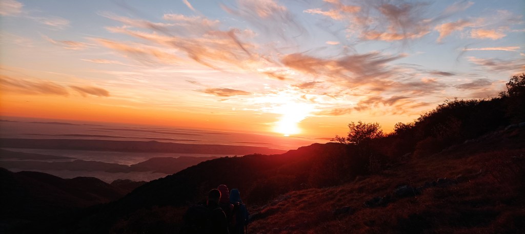 Napuštamo Dabarske kukove i gazimo mekim Velebitskim pašnjacima prema vrhu Badanj (1281m). Ugodan uspon od 30 minuta pred kraj to prestaje biti, postaje strm.  S vrha je lijep pogled prema Jadranu dok se sunce lagano spušta mijenjajući boje oko nas.