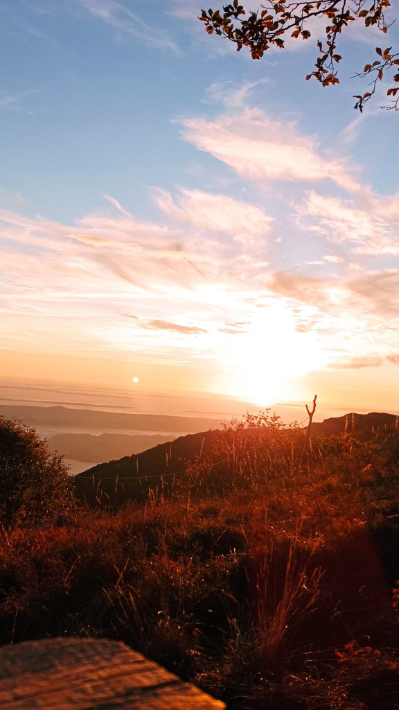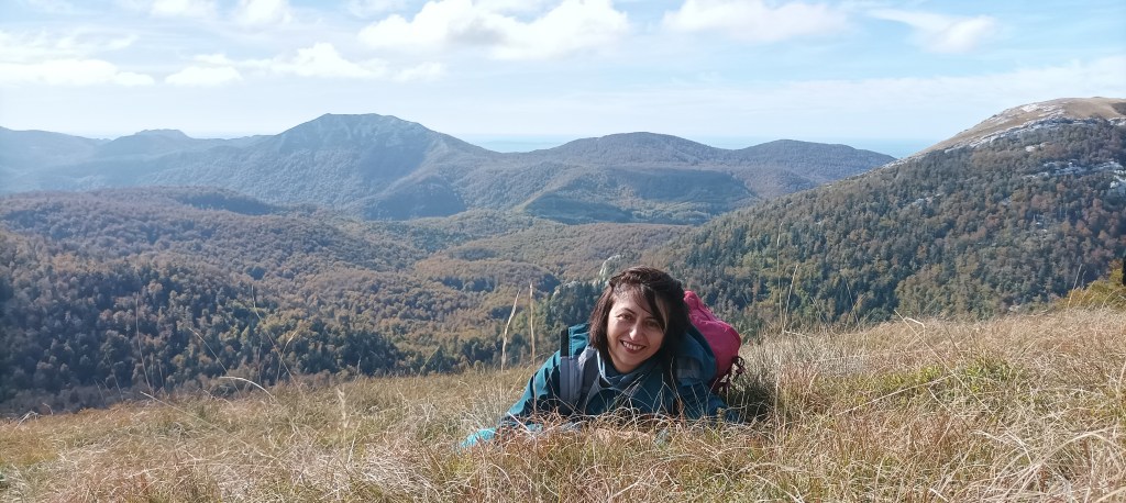 Danas ručamo na Metli, na 1288m. Točno je podne i gladni smo. Na travnatom vrhu u zavjetrini  kamenja  svatko vadi omiljeno jelo iz ruksaka. Iz moje kutije miriši vege pizza koju mi je kćer sinoć pripremila. Predana užitku, pogleda u daljinu zaboravljam na buru, a ona je marljivo puhala i otvorila prolaz sunčanim zrakama i plavom nebu. Milina!  Sad je to druga priča. Svi smo živnuli!