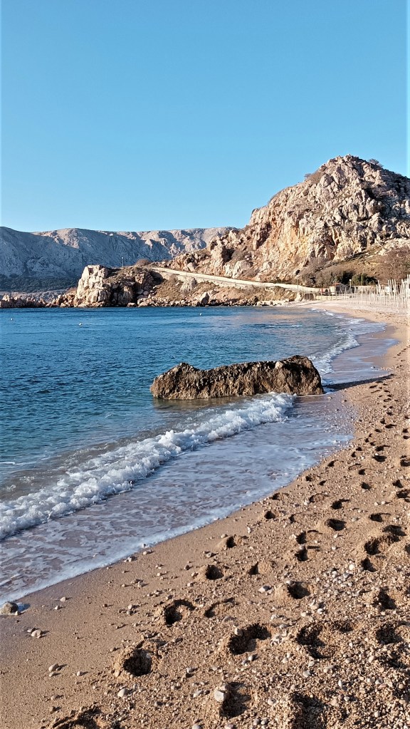 Je li na moru ljepše ljeti ili zimi? Hm, volim ljetne haljine, ali ne volim vrućine. Više volim hodati nego ljenčariti uz more, a hodati se ne da ljeti. Na ovoj nudističkoj plaži već sam drugi put, opet zimi. Da, mislim da mi je na moru ljepše zimi! Već sam i buru zavoljela. Taj oštar čisti zrak kristalizira mi misli. Divno je biti tu!