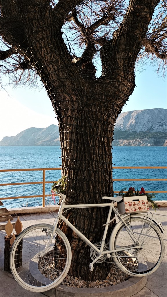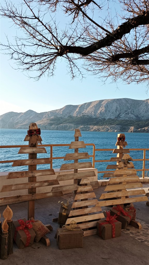 8:30 Baška je odjenula adventsko ruho. Prolazimo ulicom Palada pored zanimljivih umjetničkih instalacija.