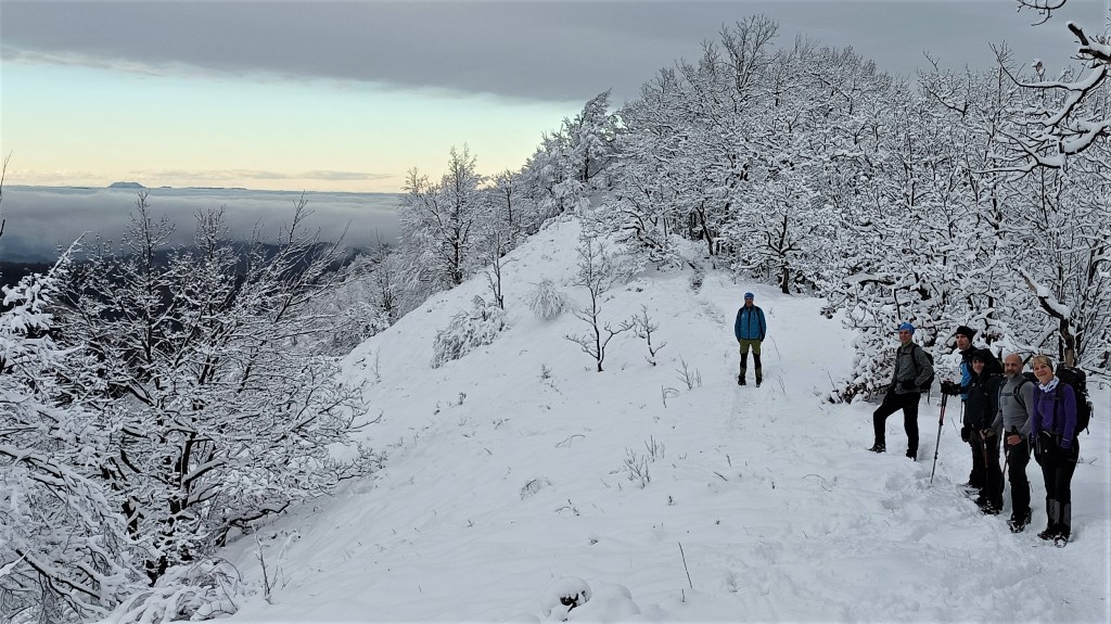 Grebenom Plešivice sretno gazimo dvadesetak cm svježeg snijega. Baš nikog ne srećemo putem. Sva ova bjelina je samo naša. I snijeg i gusta magla i oblaci, sve je to jedna cjelina, jedna tišina. Ne čuje se pjev ptica, ne šušti lišće, ne krcka granje pod nogama. Najglasnije u šumi je moje srce, teško pratim ovaj ritam uspona.