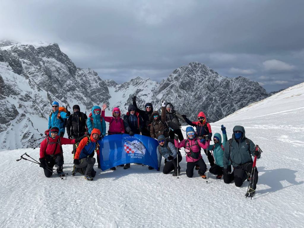13:00 Idemo do vrha Kamniško sedlo (1903m) malo prošetati i baciti oko na Logarsku dolinu. Vidici nas oduševljavaju! Razletjeli smo se na sve strane opčinjeni otvorenim vidicima , snježnim zapusima i dragocjenim sunčevim zrakama. Dubravko viče za nama: “Ne blizu ruba, streha je od snijega! Ne idi tu, ne idi tamo! Vjetar te može odbaciti!” Sve želimo vidjeti, snimiti, upamtiti – zauvijek u sebi sačuvati.