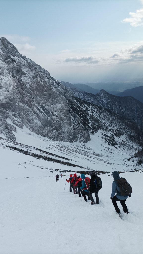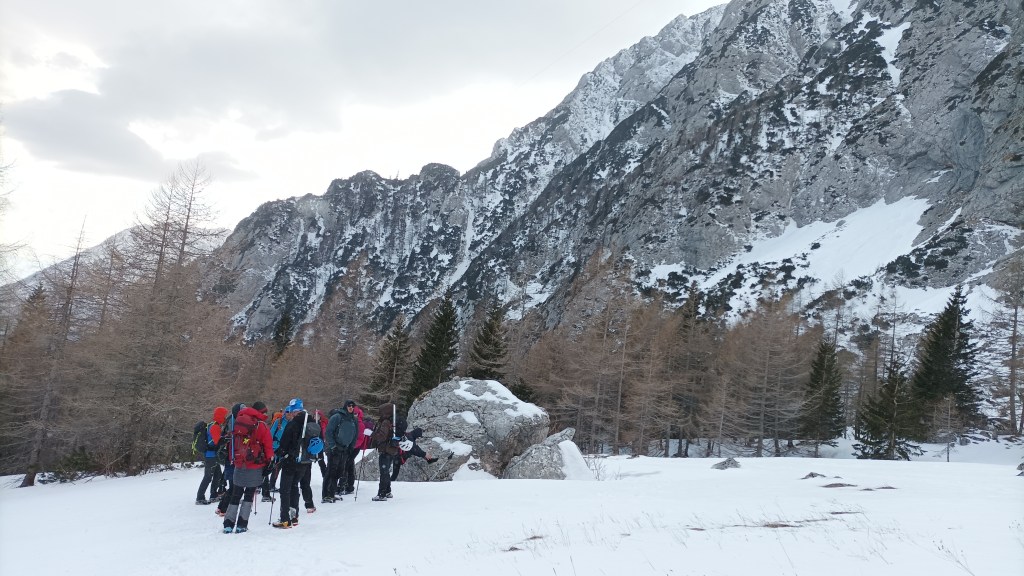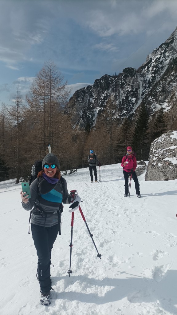 Snijeg je sve dublji i škripi pod nogama. Više nikome nije hladno, a u težak ruksak ugurala sam i jaknu. Uvijek hodam sa štapovima, a sad mi se jedan zaglavio među kamenjem ispod snijega i rastavio, a drugi ne uspijevam razvući te nosim još više tereta na leđima, a ne mogu ih samo ostaviti i zagaditi prirodu. Jedva čekam simpatično sklonište Pastirji da vidim kakvo je pod snijegom, a i gladna sam.