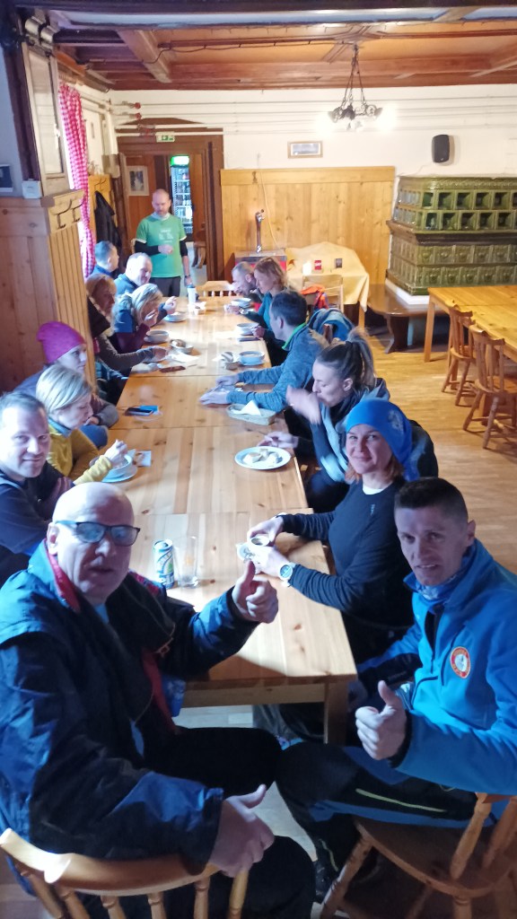 16:15 Nećemo se kupati, ni noge prati na izvoru rijeke, nego idemo takvi kakvi jesmo u planinarski dom vidjeti što im je od hrane ostalo jer zatvara se u 17h. Bilo je juhe od gljiva, jote, gulaša i štruklji od sira s brusnicama. Dovoljno i u slast!