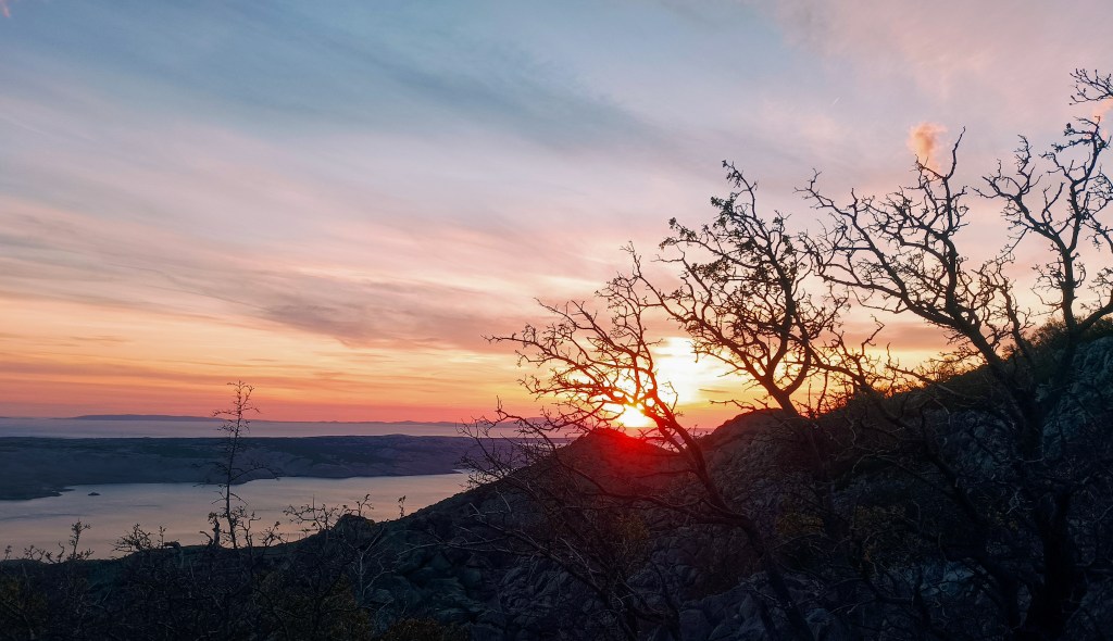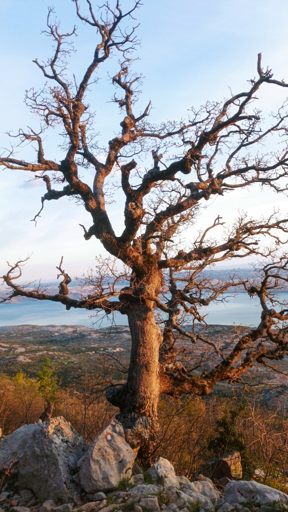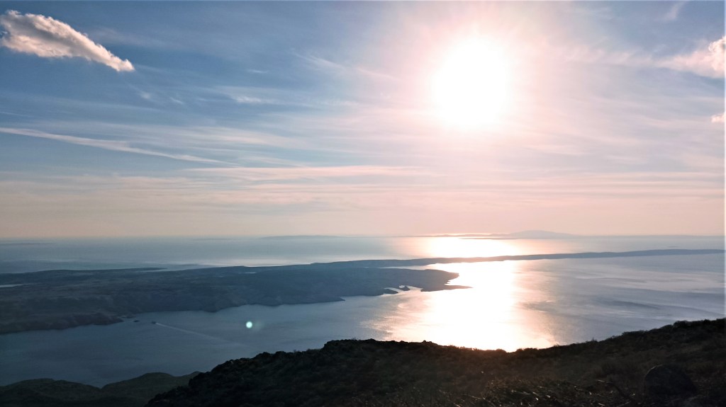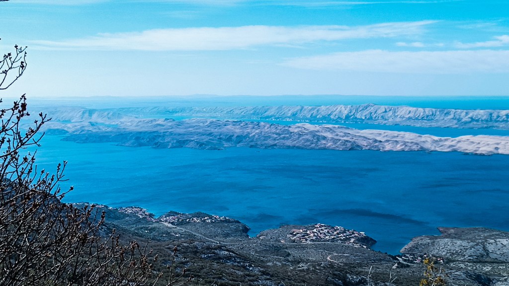 Blagi uspon i opet smo na primorskoj strani. Opet gledamo Pag i plavi Jadran. Hodamo pastirskom stazom prema selu Čačići, koja je davno markirana planinarskim oznakama, no danas se ne daju pratiti jer su izblijedile. Sve mi je lijepo: