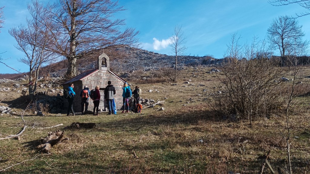 17:45 Naići u ovim velebitskim prostranstvima na kuću pravo je čudo. Zaseok Radlovac. Ujedno idilično, ali i sablasno. Živjelo je ovdje na zaravni u planinskom okruženju puno obitelji. Čuvali su stoku, obrađivali zemlju, veselili se i tugovali, a sad mi hodamo njihovim pustim dvorištem…Tu je i kapelica, obnovljena. Kad pomislim koliko je uloženo u olupinu tzv. Apoksiomena da se izvuče iz mora, restaurira, zgrada preuredi za njegov smještaj – a ovo blago naše tradicije prepušteno je propadanju. Tuga.