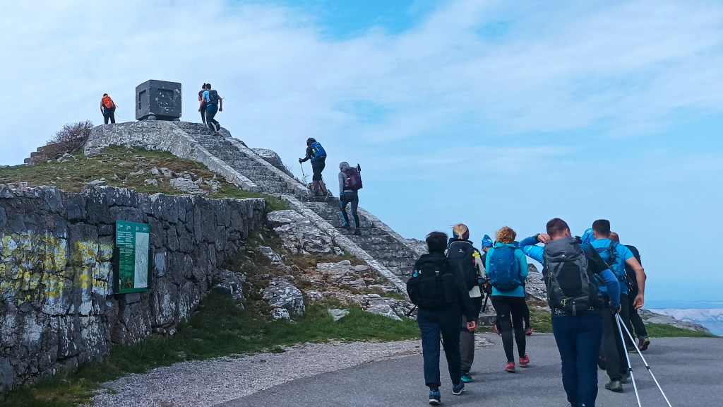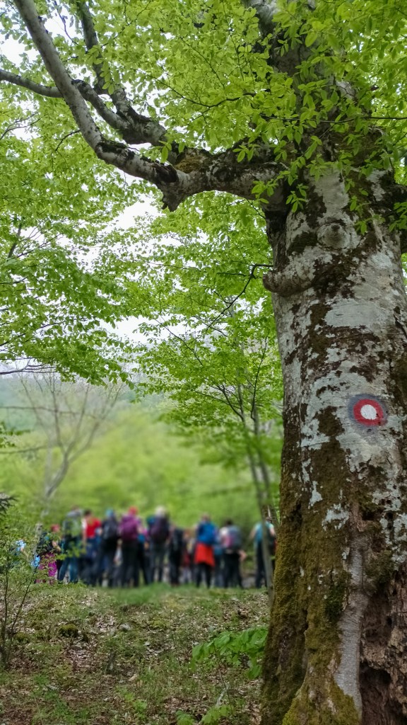 Spuštamo se pored jedinog stada ovaca danas. Dubravko hoda prvi i marljivo miče puževe sa staze da ne stradaju. Penjemo se na susjedni vrh Vršak (1147m).