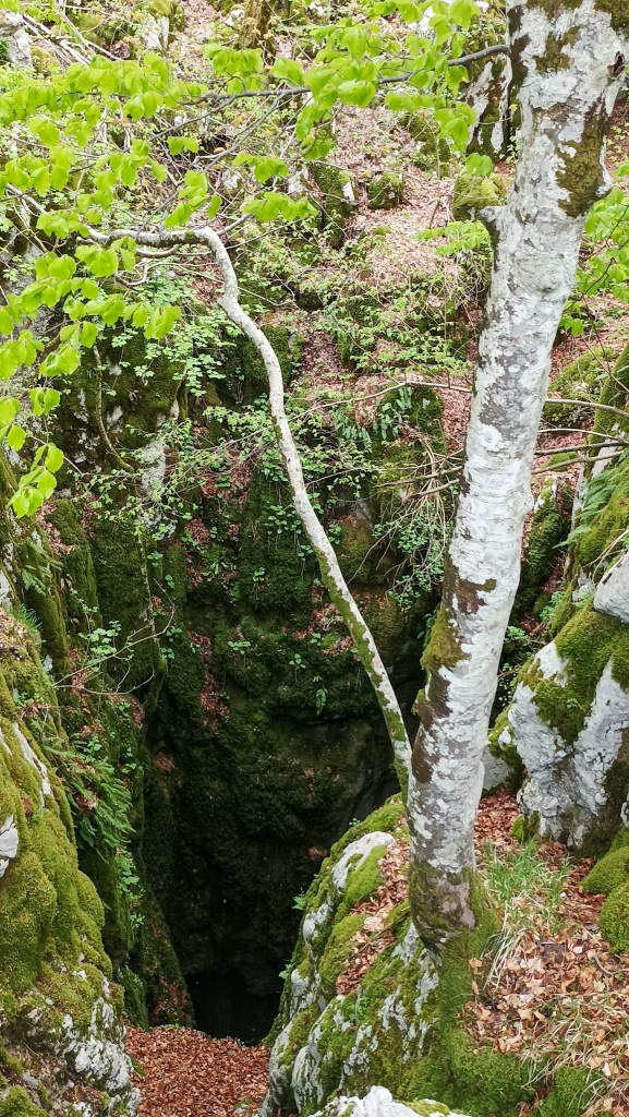 Zelene se krošnje nebu pod oblake, a zeleni se i kamenje obavijeno vlažnom mahovinom. Strmo se spuštamo, klizimo do jezive istine. Krška jama bila je mjesto likvidacije ljudi. Ljudi su u ovakvim jamama nestajali. Tek jedna od jama, ne i jedina.