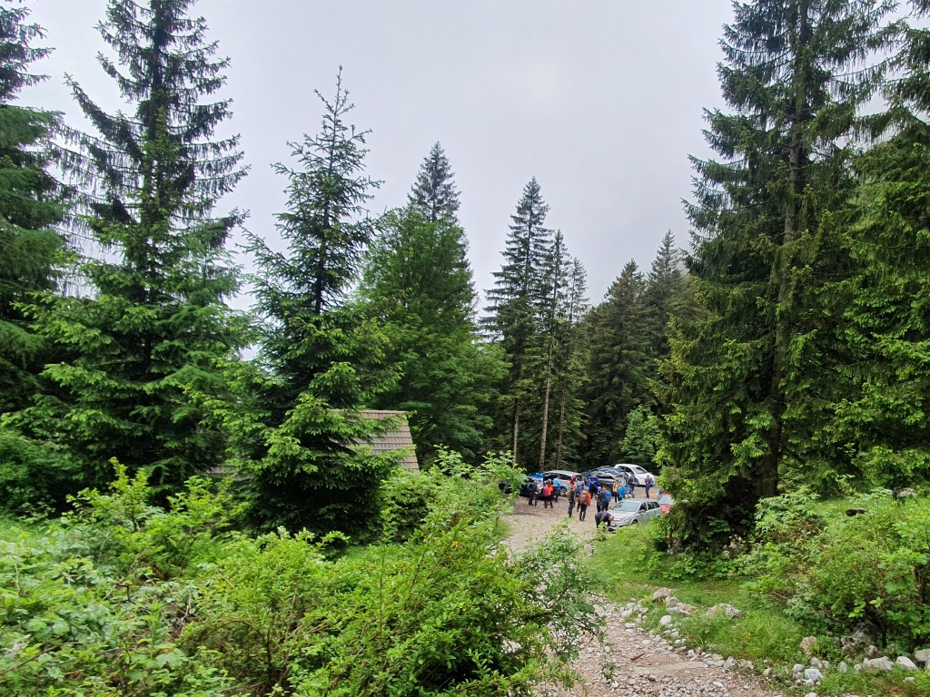 5:00 Dolazim na polaznu točku. Ekipa je već na okupu – stanujem blizu i normalno dolazim među posljednjima. Primam puno zagrljaja. Mislim da je to zato što na zadnja dva izleta nisam bila. Moram to ponoviti! 🙂 Vesela atmosfera u autu, kavica na odmorištu i začas smo u šumi na šljunčanom parkiralištu Titove vasi pored Tinčkove koče na 1070mnv.