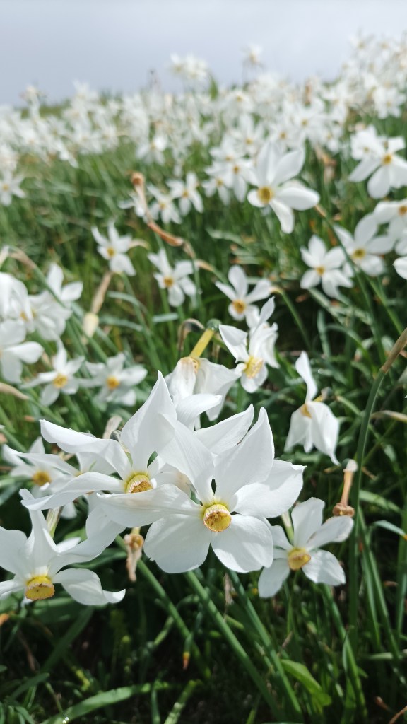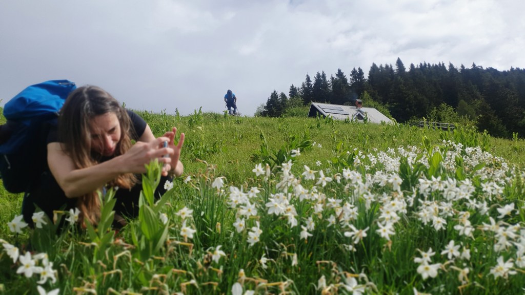 Serpentina po serpentina, rečenica po rečenica penjemo se s nadom da ćemo se dići iznad oblaka, a nije lako filozofirati, mudrost svoju prosipati o npr. tajnama uspješnog braka pri konstantnom usponu kroz crnogoričnu šumu po kamenju i isprepletenom korijenju pod nogama. Uspjeli smo! Nalazimo se u sendviču iznad bijelih, a ispod sivih oblaka dok je pored staze najljepši od svih – cvjetni oblak. Fantazija! Bacamo se na koljena, uranjamo među bezbroj mirišljavih narcisa, Ela i ja, tražeći najbolji kadar, tražeći zlatni rez!