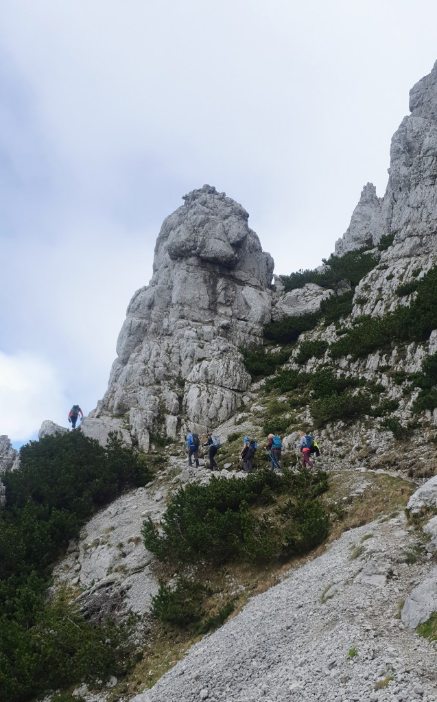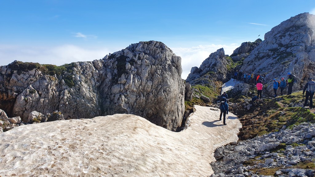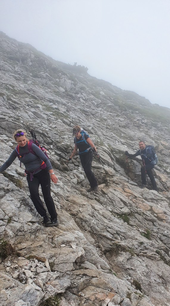 16:45 Nekoliko je stjenovitih dionica gdje sam iza svake očekivala cepin sa sajlom, a nije ga bilo – samo je hladan vjetar sušio naše znojem natopljene majice.