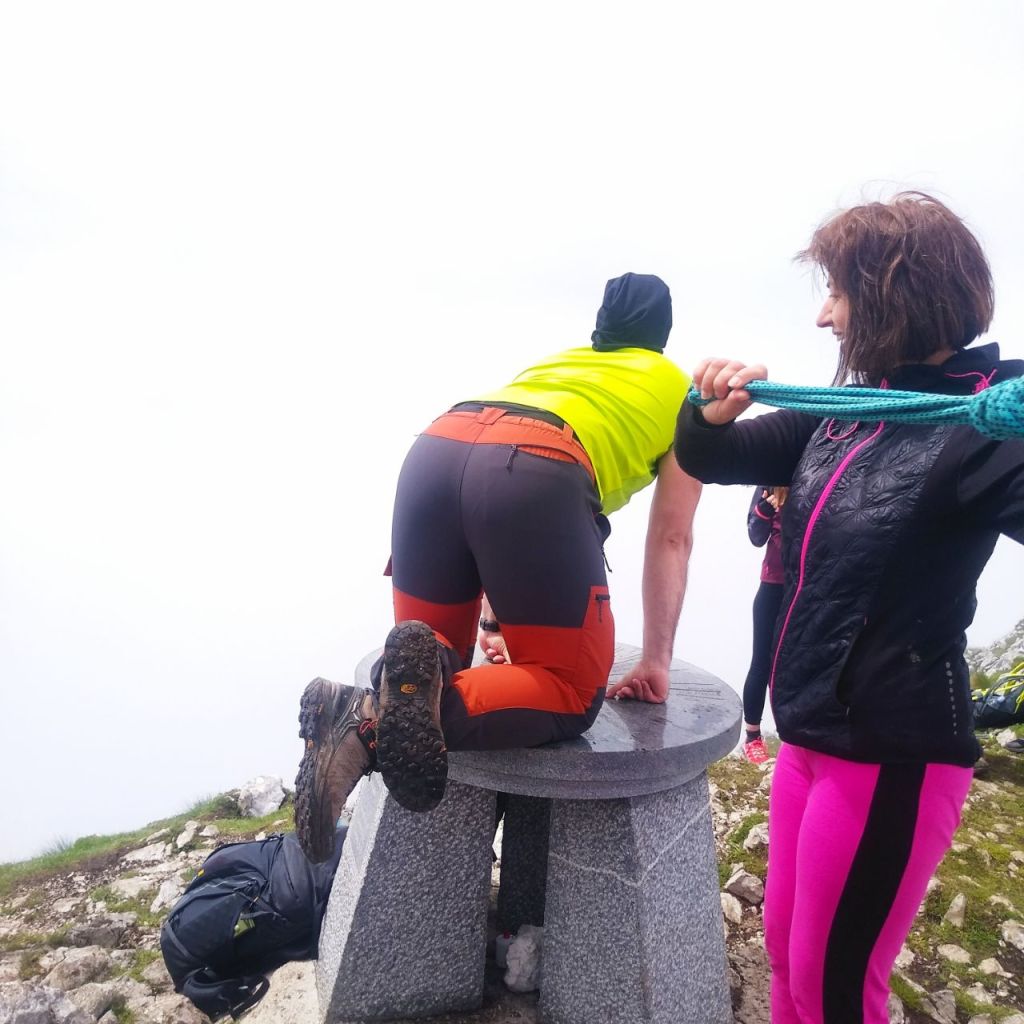 Ovo je ujedno 6. izlet naše planinarske škole. Nema mjesta za paniku, nema razloga za strah … Ili možda ima?! “Jel’ netko danas prvi put iznad 2000 metara?”, čujem pita Jura, a vodičko uže pretvara se u kratko uže kojim se obilježava prvi dolazak na vrh iznad nove tisućice. Mislila sam da simboličan udarac po stražnjici nikako ne podržavam, no sad kad je uže u mojim rukama – to otvara sasvim drugi pogled na situaciju. 🙂 Pozdrav Ivanu!