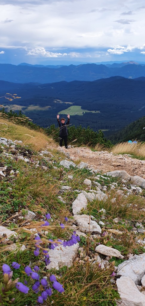 Danas nas je vrijeme pomazilo. Sunčano je i ugodno toplo uz lagani vjetar – optimalno za planinarenje. Put do vrha Mrežce (1965m) je pitom, ugodan, bajkovit. Encijan krasi planine svojom prodornom bojom još od proljeća.