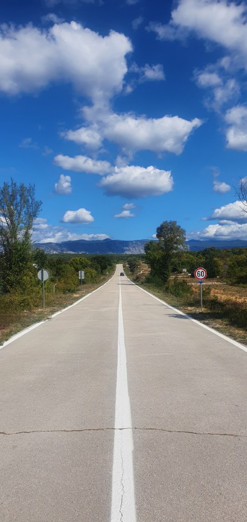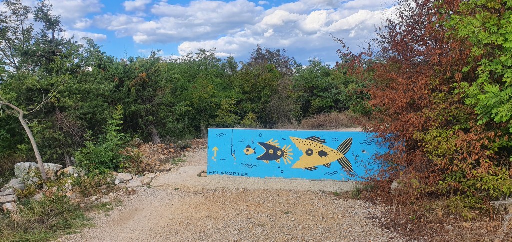 Danas je dan povratka jer su najavljene jake kiše. Spremamo stvari u auto, ali još nije gotovo. Nastavljamo Caminom iz Omišlja gdje smo stali u petak zbog Salomonki. Zadovoljstvo je pratiti ove stilizirane Camino oznake i ići dalje, dalje, dalje… Jer nama se nikud ne žuri…