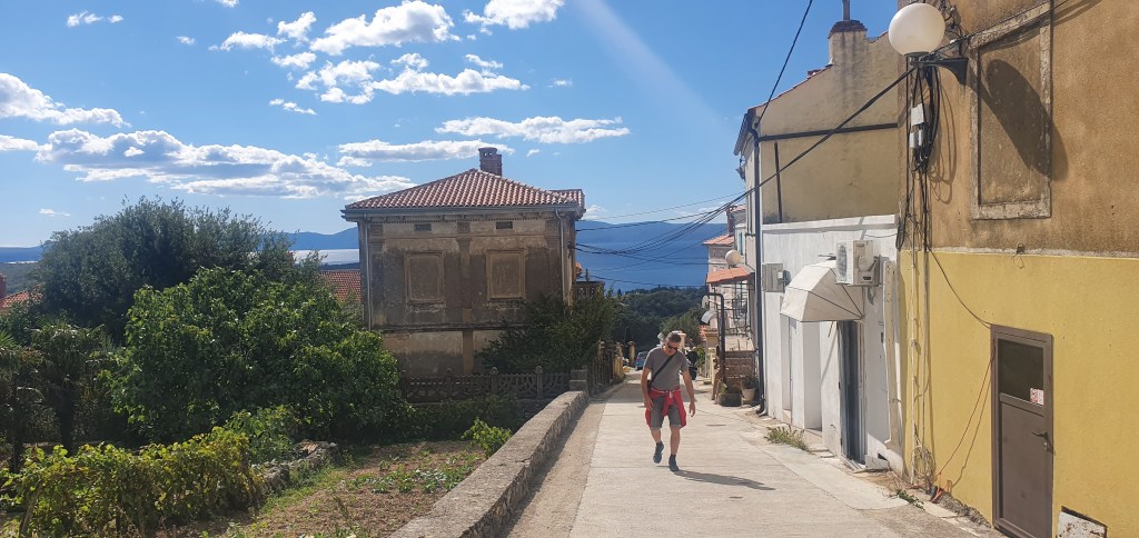 Šetnju započinjemo gdje smo jučer stali, znači, autom do Njivica, gdje ribar krpa svoju mrežu, a dalje pješke prema Omišlju.