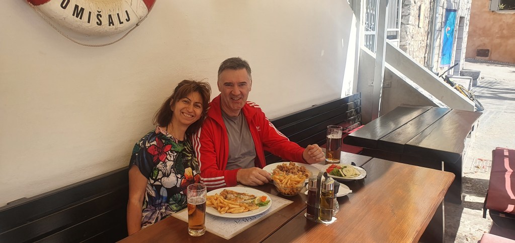 U konobi Zora sjedi grupa austrijskih umirovljenika. Hm, kako su došli? Nismo vidjeli autobus. Malo kasnije dali su nam odgovor – popeli su se na svoje moderne brdske bicikle i odjurili nizbrdo prema Vrbniku, a mi polako za njima autom penzionerski. 🙂