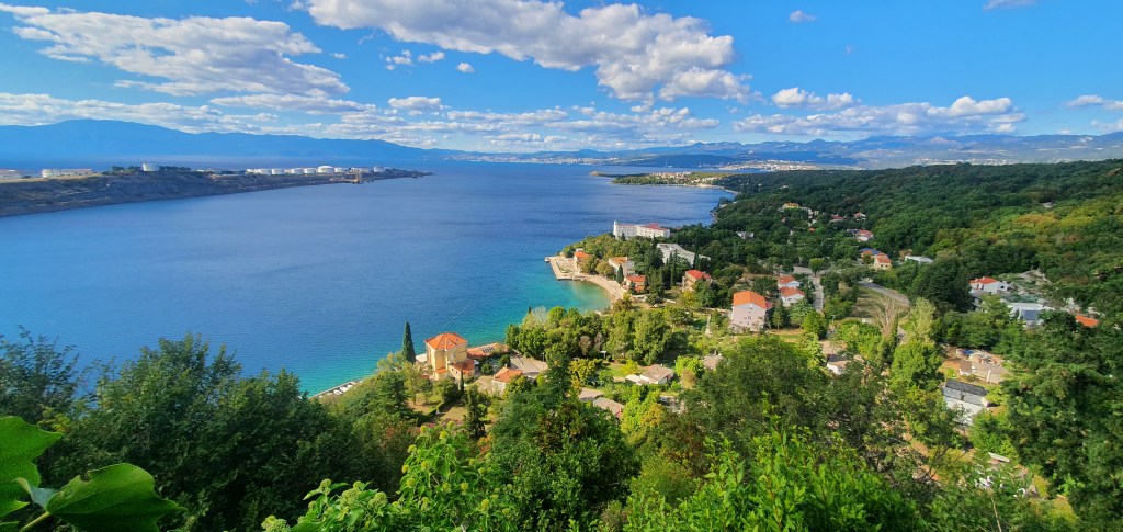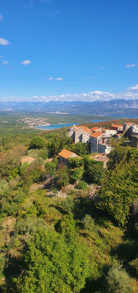 S vidikovca crkve Sv. Vida gledamo Čižiće – mjestašce uz obalu odakle sam prošli put došla pješke s ekipom i dobro se oznojila.