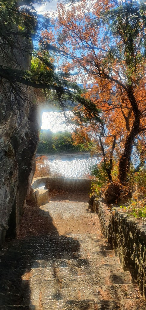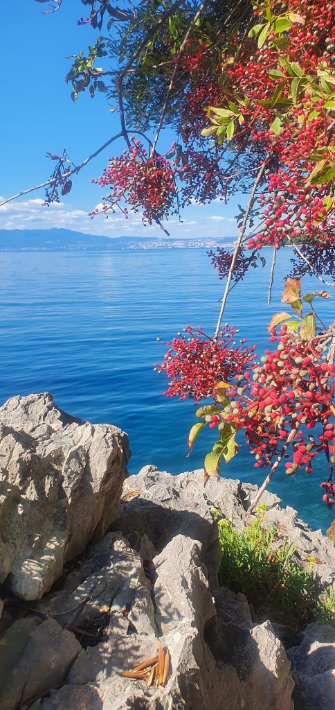 Smjenjuju se dionice uz more i kroz šumu. Sve je idealno, osim što imamo mobitele. Zvoni suprugov. Zove mlađa. Čujem riječi: osiguranje, rasuto staklo, policija. Srećom, nije nitko ozlijeđen, a nije niti kriva. Događa se. Uff.