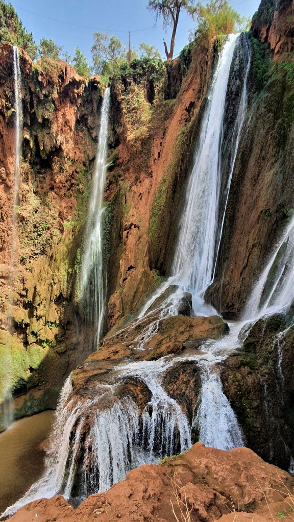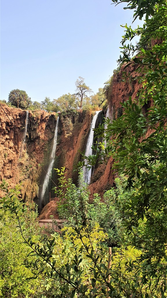 14:00 Slapovi Ouzoud nastaju iz rijeke koja teće iz Atlasa i obrušava se u rijeku El-Abid. Visoki su 110m, spektakularni i najviši u sjevernoj Africi. Prolaskom bezbroj stepenica spuštamo se do razine jezerca gdje plove slapovi, a hrabriji plivaju pod sam slap u jako mutnoj vodi. Ovo jedinstveno mjesto iskoristit ćemo za ručak. Zato je tu Samir – on zna gdje se fino kuha.