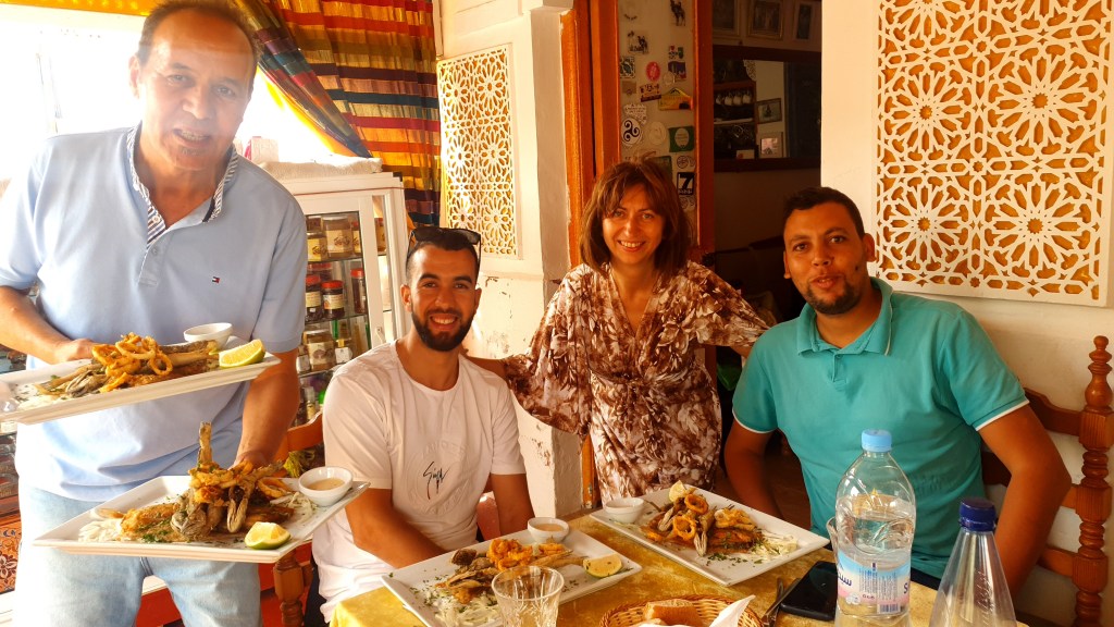Ručamo u dosad najboljem restoranu Nomad u gradu Sidi Ifni, gdje se jedu riblje delicije. Jedan tanjur ljepši je od drugog. Samir i Muhamed sad su naši gosti.