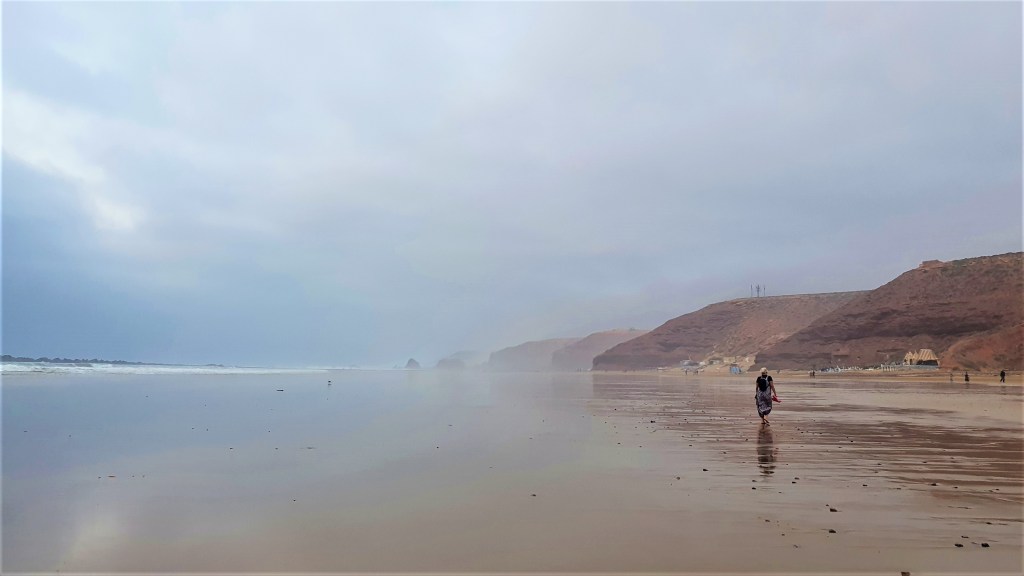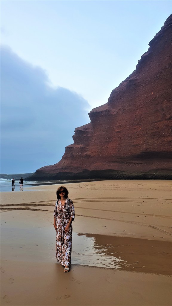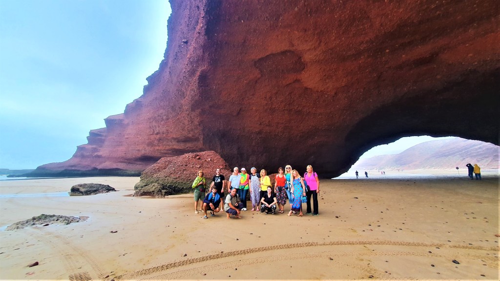 18:00 Plaža Legzira udaljena je 10 min. Jasminka i Darko točno su izračunali kad će se more dovoljno povući da možemo proći ispod famozne crvene stijene.