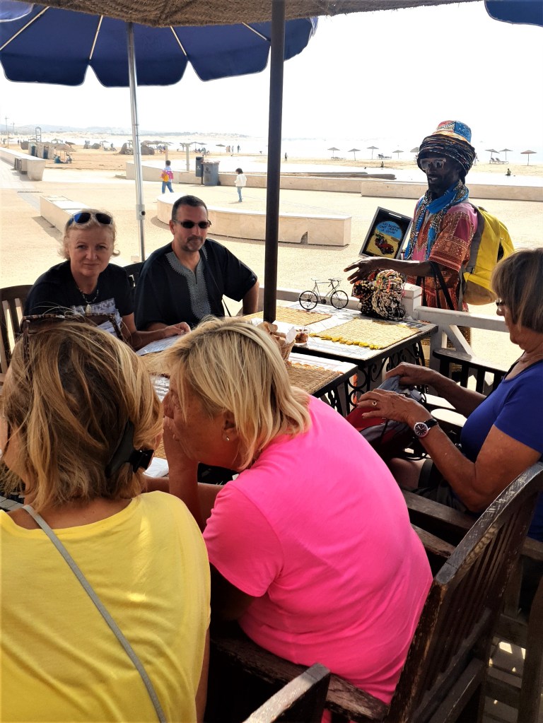 Ručamo svi zajedno na obali. Ovo turističko mjesto podsjeća na europske široke plaže, a pet minuta dalje iza debelih zidina ludnica je od trgovina. Kupila sam mužu berberski prsten, na kratko bila Carry iz Sex and the city i kupila cipele te zapela sa Sandrom u isprobavanju haljina. Kad smo pogledale na sat dale smo se u trk jer već kasnimo.
