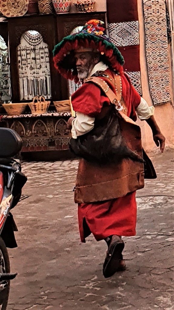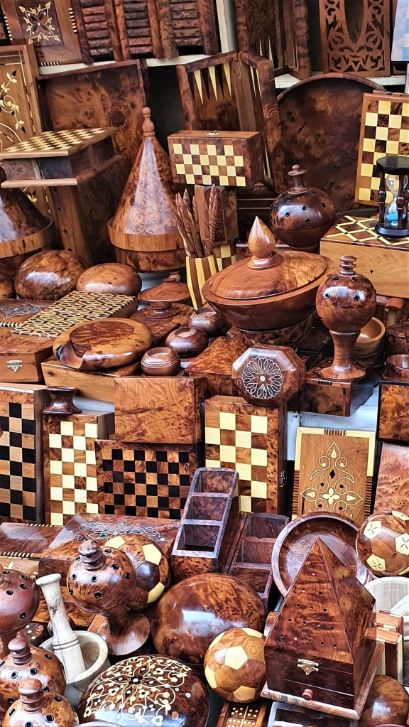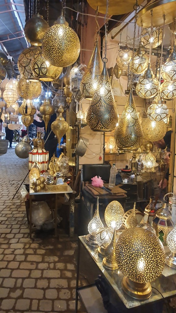Ulazimo u čarobni svijet uskih uličica krcatih kojećime. Svi nas pozdravljaju i smješe se. Ma, divni su! Ovdje ima puno čaša. Gledam ih. Izmijenim par rijeći s vlasnikom, zove me da uđem. Ulazim iako mi je jasno što radi – staje iza mene da mi zapriječi izlaz. Dok biram koje ću pita me jesam li udana. Jesam. Šteta, kaže. Pita Sandru koliko deva traži za mene, znam da se samo šali. To je dio folklora. Kaže da je Berber. Pitam ga što smatra karakterističnom osobinom Berbera. “We are gentle people and very good at night.” – “I’ll never know, so I have to just trust you!” I tako…Usput sam kupila čaše.