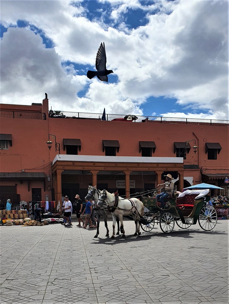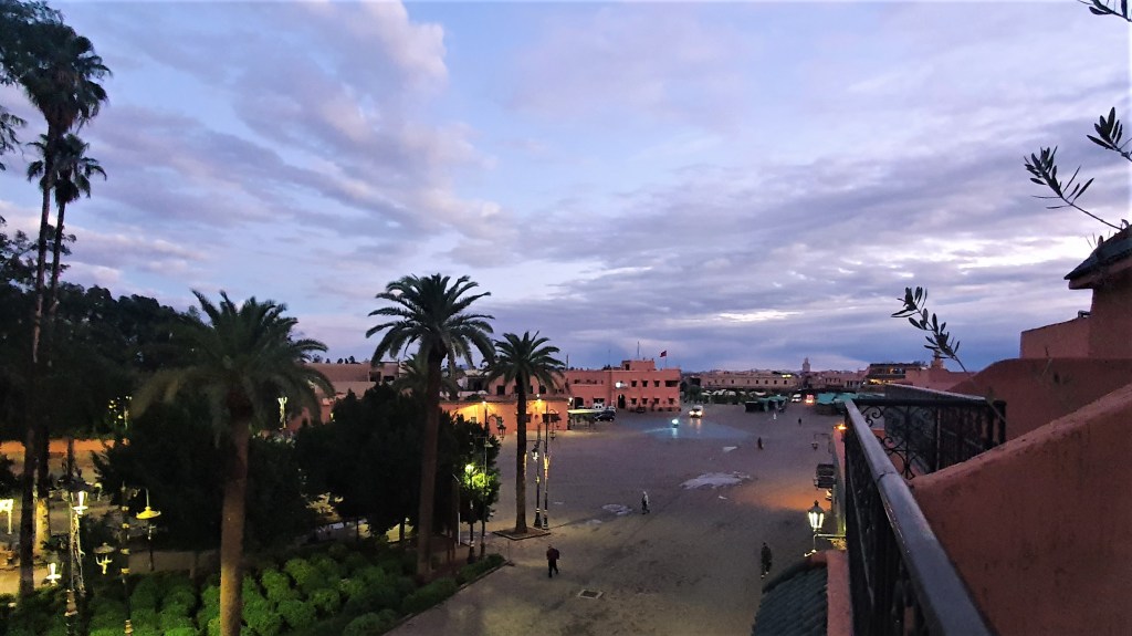 Jedan sat je u noći, preglasna glazba i dalje trešti s Trga. Smetlari ispod naše terase s konjskim zapregama sakupljaju smeće. Blažena Sahara, Visoki Atlas i Berberi.
