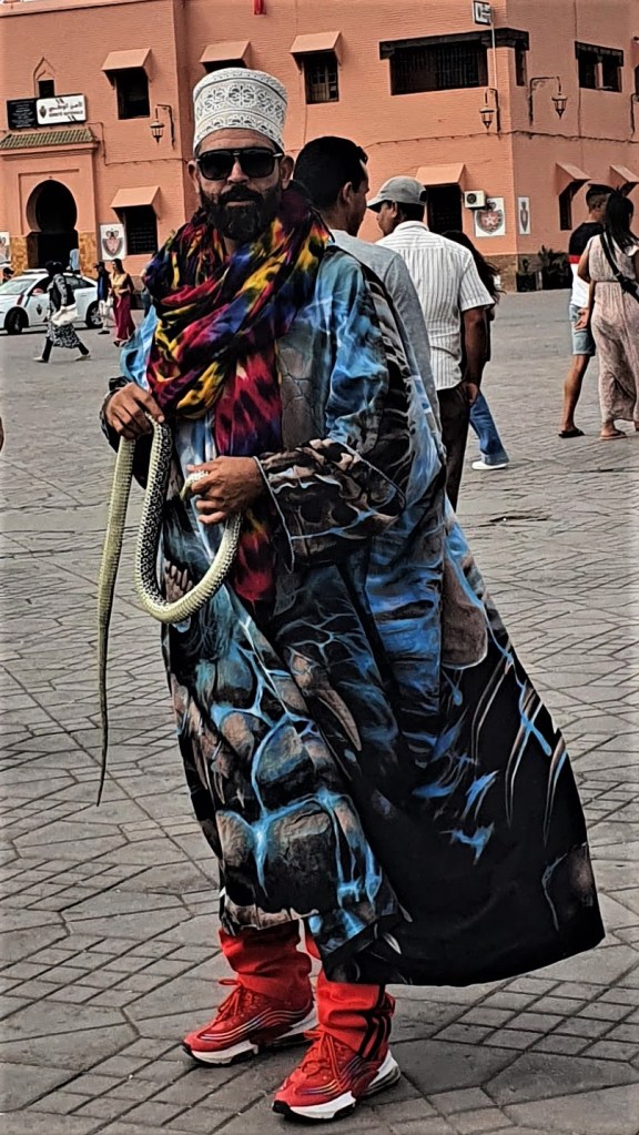 Još nam se boja nije osušila kad li: “Hajmo još jednom vidjeti zmije.”, predlažem znajući da Sandra priželjkuje jednu dodirnuti, a ja bih fotku. Nedovoljno diskretno fotkam odabranu skupinu glazbenika i zmija. “Madam, you have to pay for the photo!”, prilazi mi brzim koracima visok, snažan, grubog glasa, još grubljeg pogleda s jednom velikom u ruci.