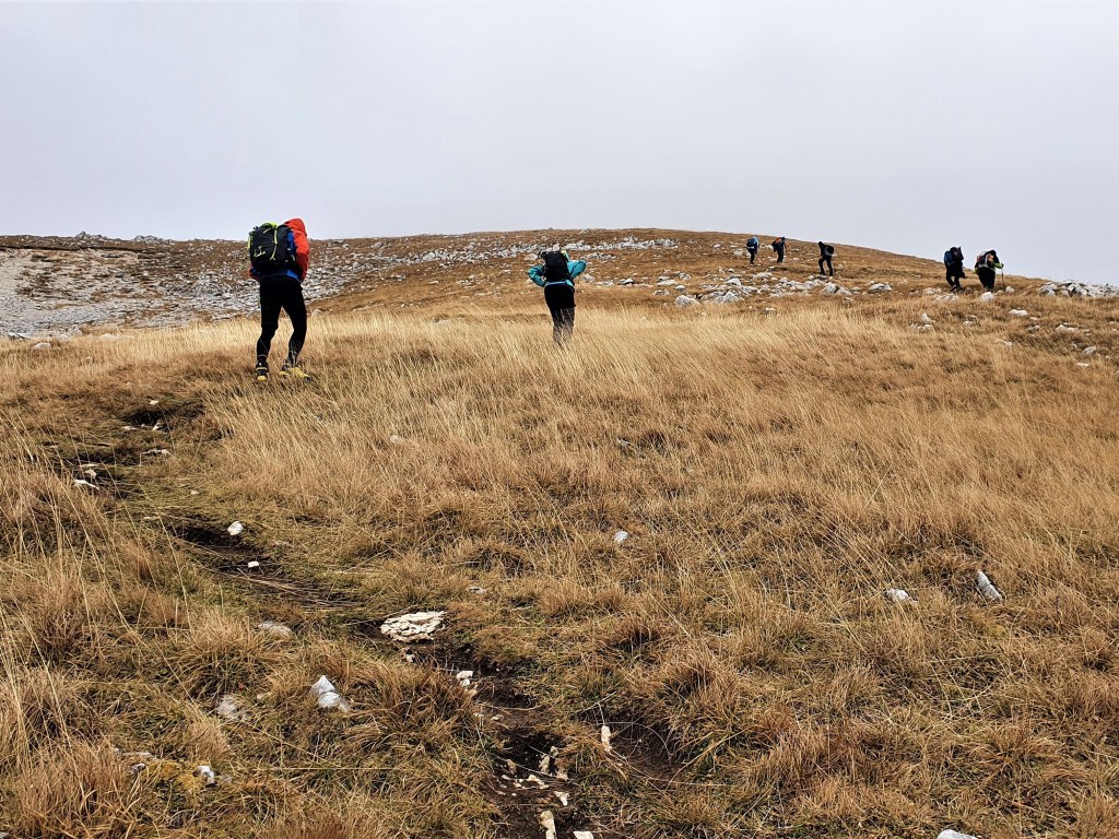 Suha trava povija se pod naletima vjetra kao i mi dok se penjemo prema vrhu Tosc (2275 m), našem današnjem vrhu dana.