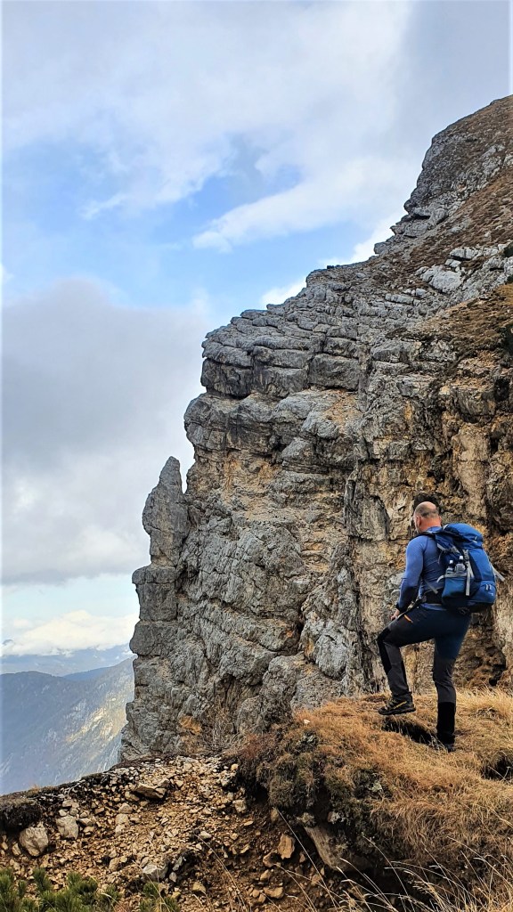 Gledam, puno lijepih puteljaka vijuga na sve strane, a i mi ćemo jednim od njih proći. Najljepšim. Bočnom stranom uzduž Malog Draškog vrha uskom policom usječenom u strminu polako i oprezno pridržavajući se za sajlu tek povremeno. To mi je najbolji dio dana.