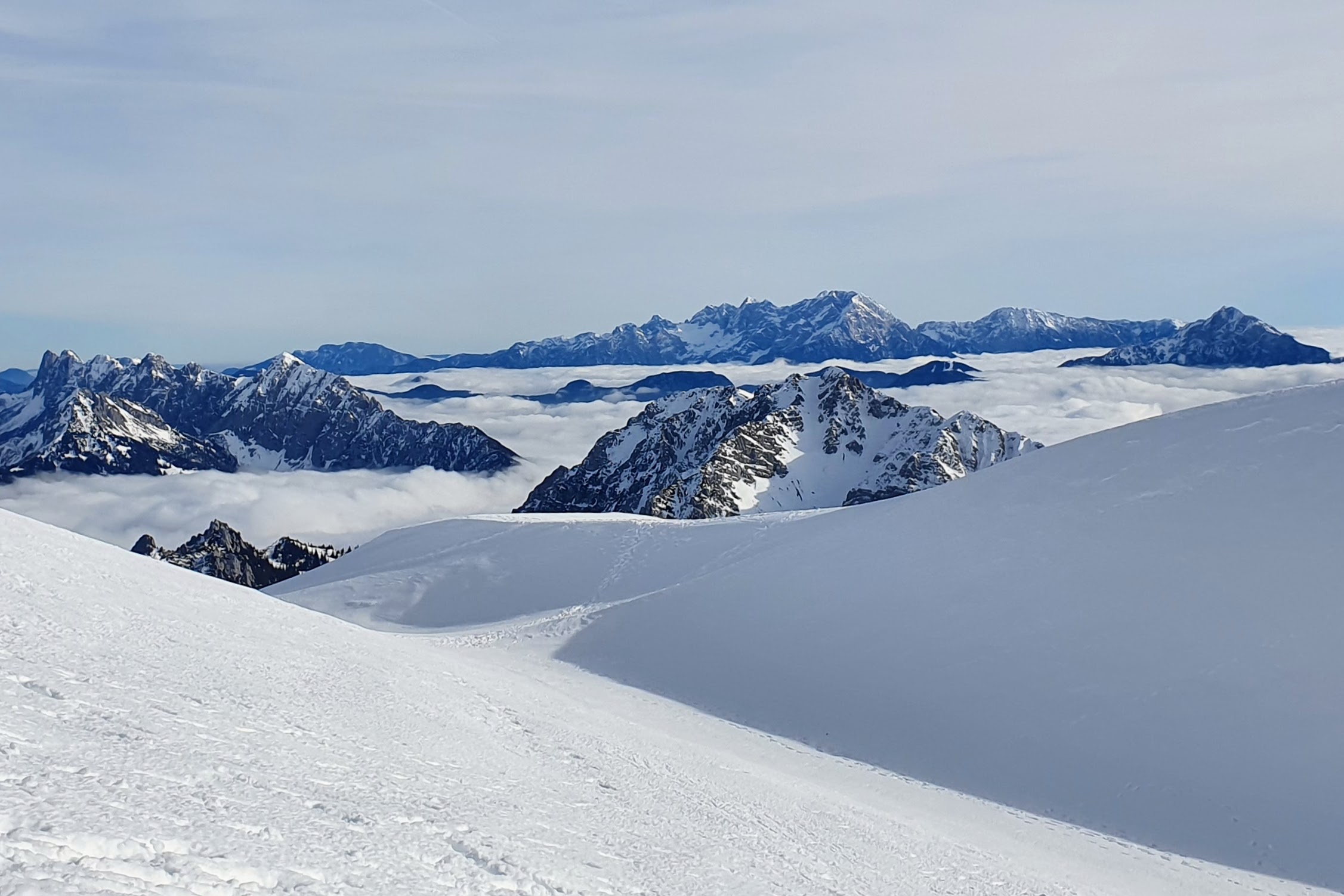 Na visini od 1800 m stavljamo dereze da sigurnije hodamo, leda nema. Ulazimo u sasvim drugi svijet. Svijet nepregledne bjeline, svijet jedne drugačije tišine, svijet koji oslobađa od razmišljanja.