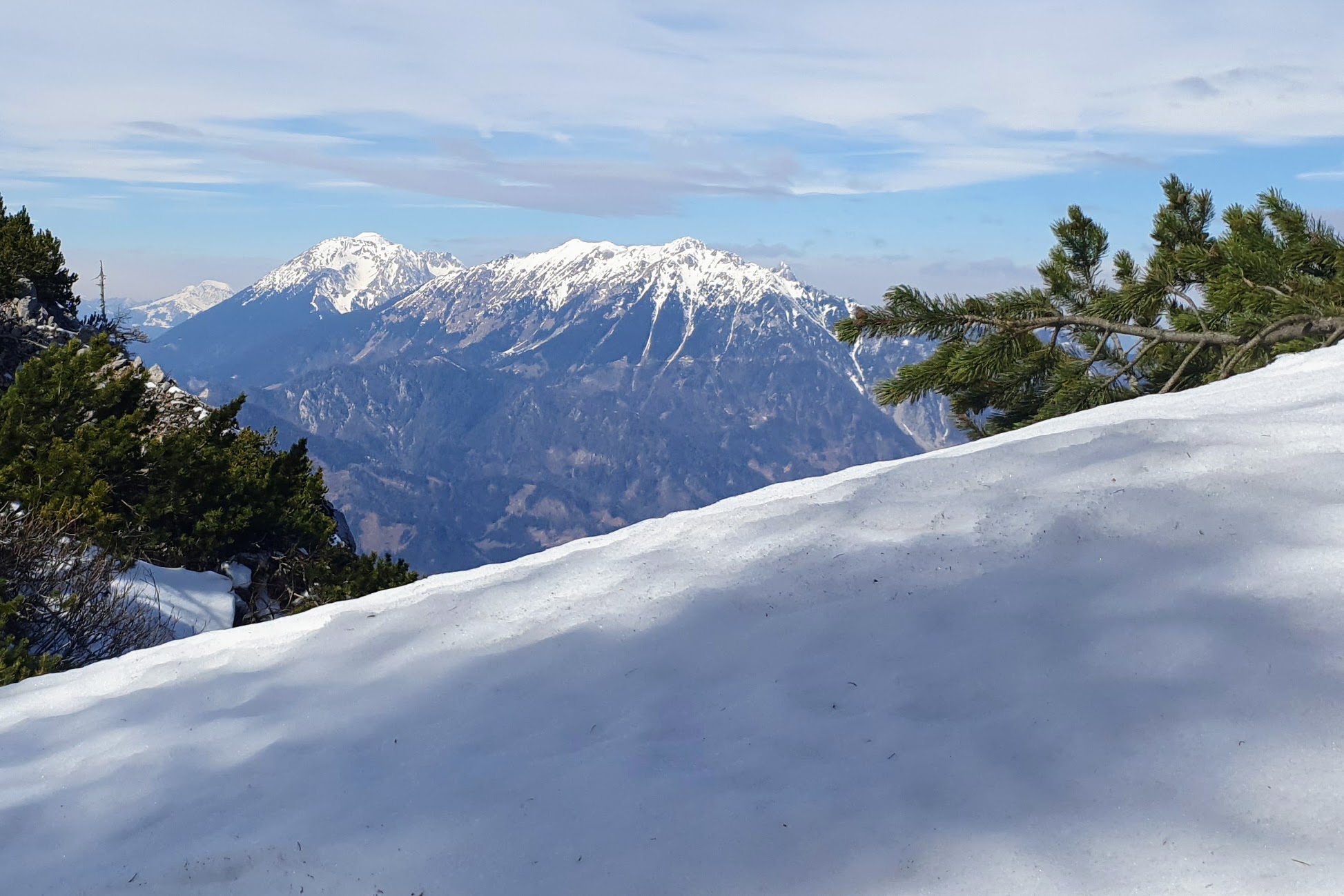 Snijeg. Zdesna nam je Storžič. Visok 2132 m, markantan, privlačan. Rado bismo ga obišli, ali danas nam je nedostižan jer Enver mora biti u Zg u šest. Osim toga sigurna sam da je kao i mnogo drugih stvari zapravo ljepši iz daljine, mislim na Storžič. 🙂 “Ne, nemoj mi prići, hoću izdaleka da volim i želim tvoja oka dva. Jer sreća je lepa samo dok se čeka, dok od sebe samo nagoveštaj da…” rekla je to najbolje D. Maksimović.