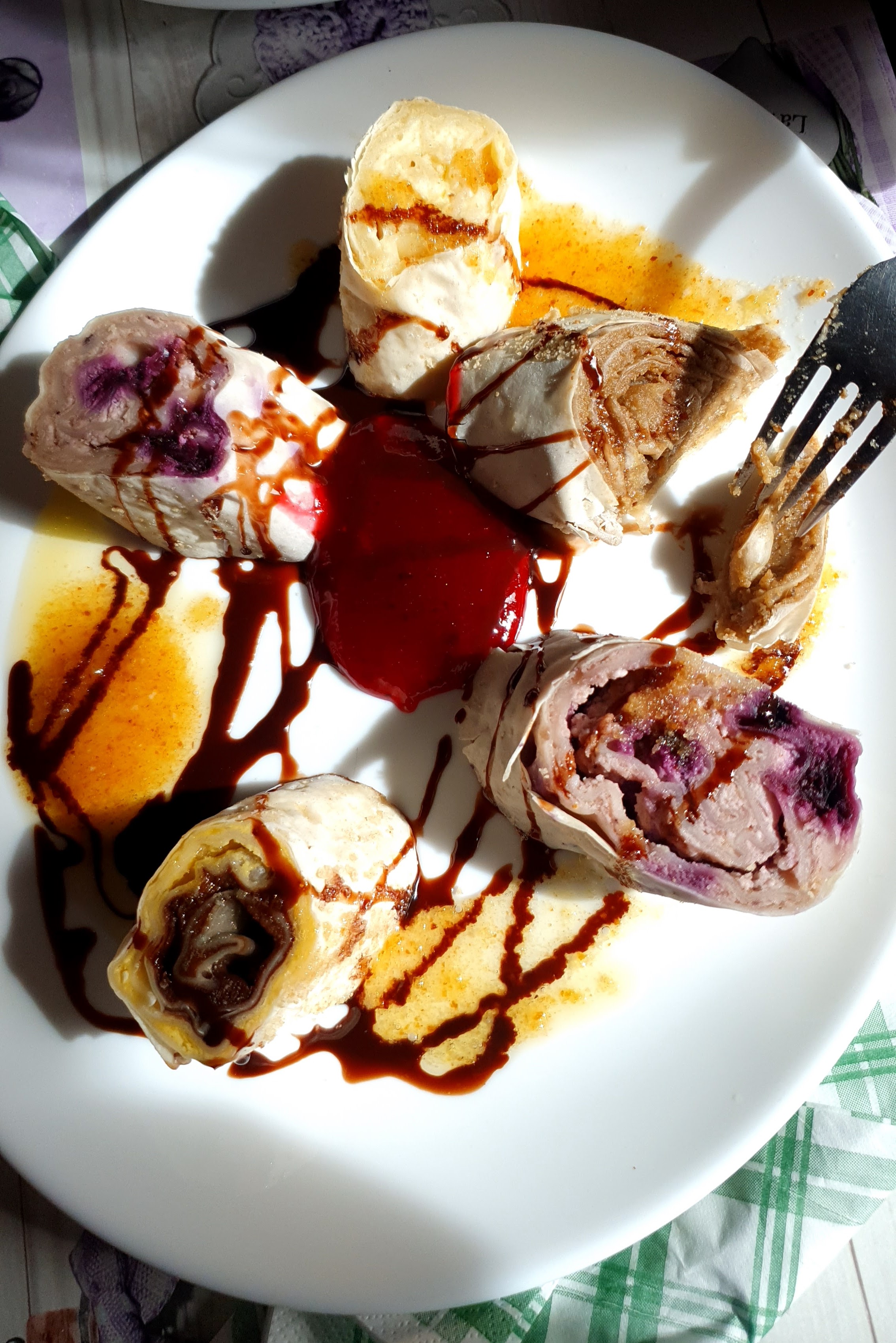 Slovenski štrukli nešto su sasvim različito od naših. U ovdašnjoj porciji su 4 različita punjenja: sir, sir s borovnicama, čokolada te orasi, a uz to ide preljev od jagoda i popržene mrvice. Rapsodija okusa!
