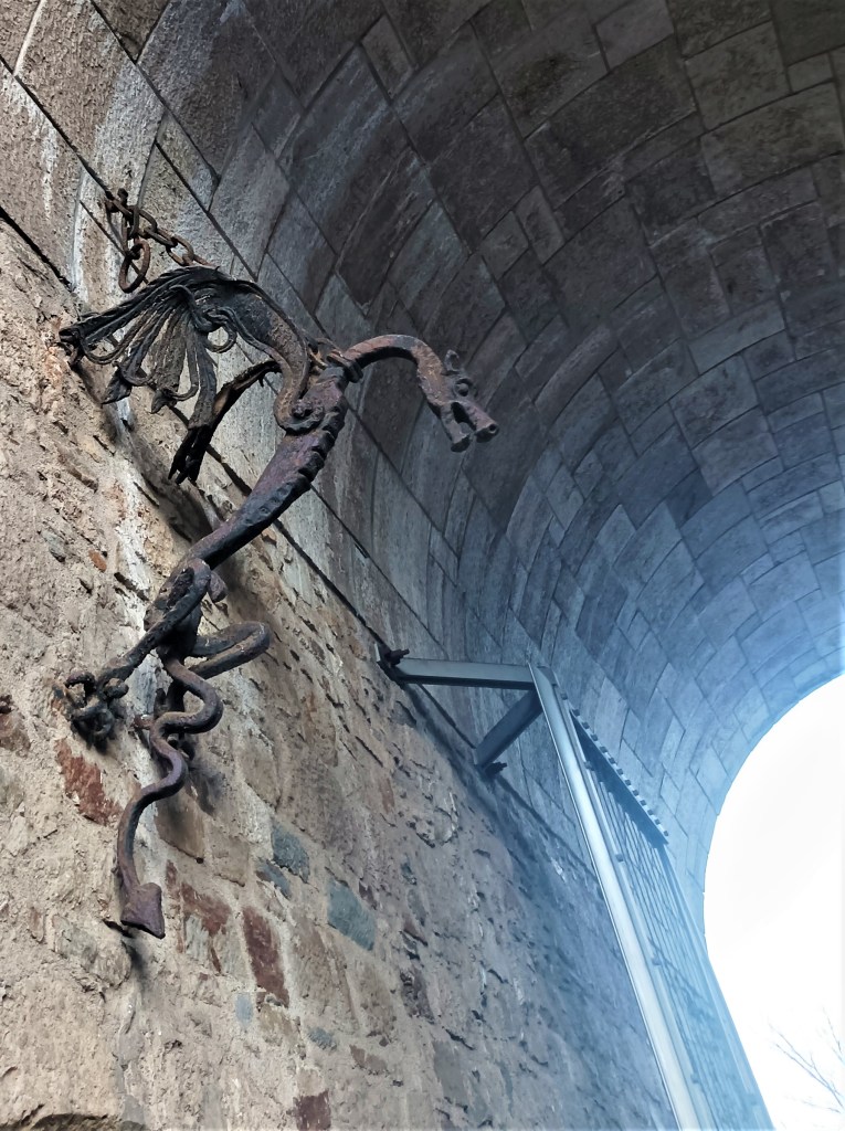 Zmajček na ulazu u Stari grad na brdu usred grada .