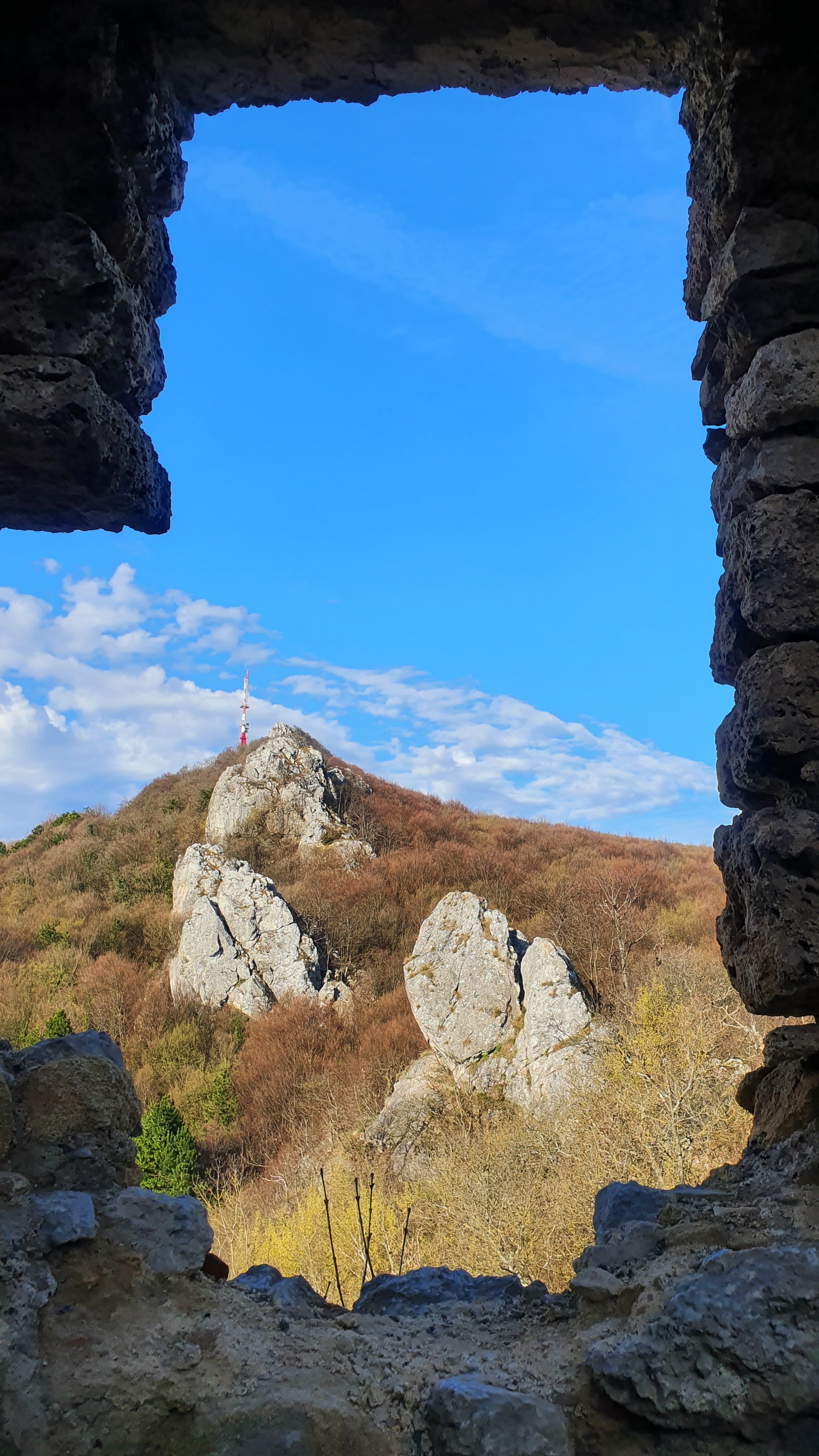 Kroz okno vidimo tv toranj ispod samog vrha Vranilac i greben 7 zuba koji vodi do njega, što je ujedno i naš je današnji cilj.