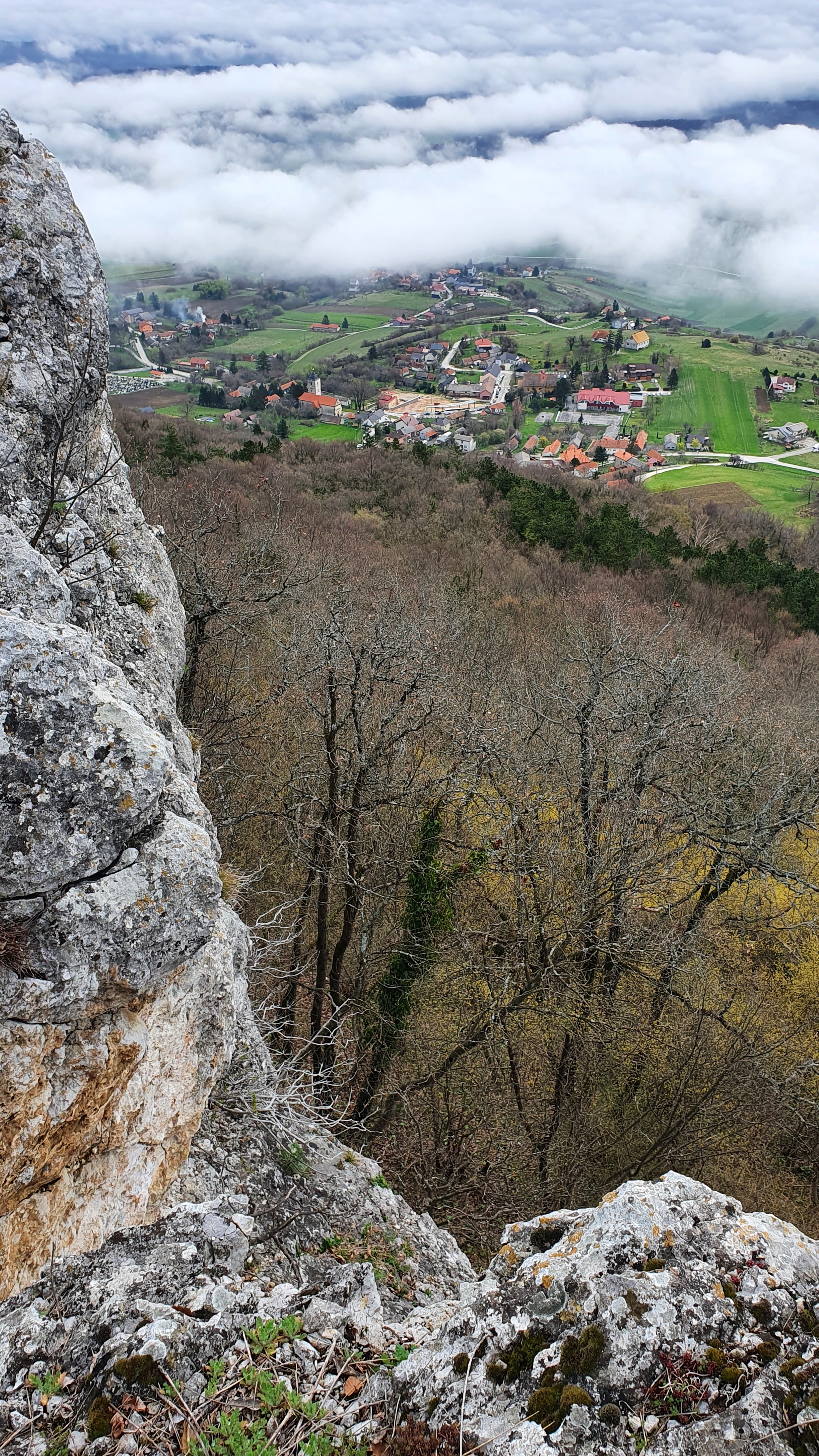 Gledamo Stari grad Kalnik uklopljen u greben, a u nizini se protežu magla, općina Kalnik i tek zazelenjela polja pšenice vrijednih žitelja.