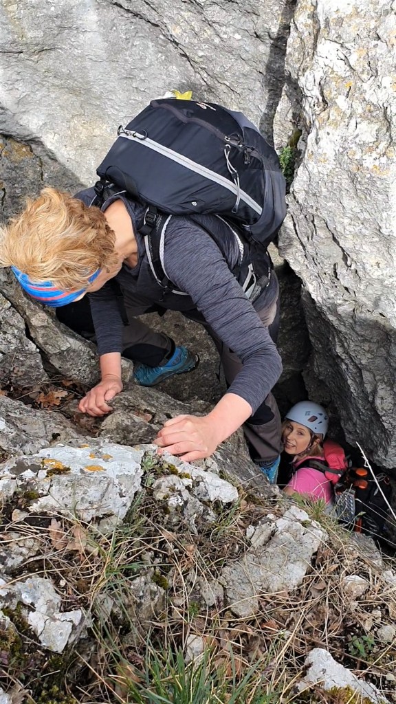 Četvrti je bio baš sklizak, pa sam ga zaobišla i popela se s druge strane taman da vidim kako se provlače kroz uski, tijesni prolaz.